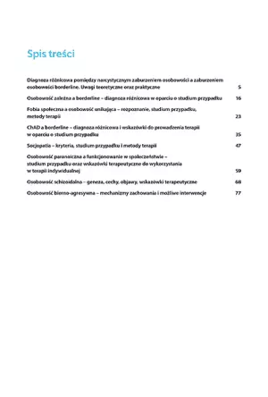 - Analizy różnicowe – borderline vs. narcyzm, osobowość zależna, unikająca, schizoidalna i inne