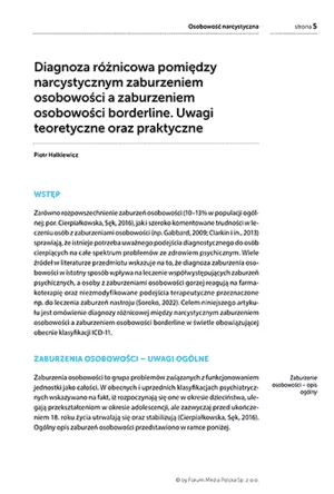 - Diagnoza różnicowa pomiędzy narcystycznym zaburzeniem osobowości a zaburzeniem osobowości borderline. Uwagi teoretyczne oraz praktyczne