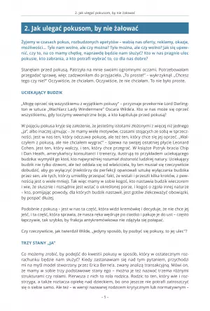 Nie jest sprawą przypadku, że niewierności małżeńskie zdarzają się raczej wieczorami, a nie rankiem. Samokontrola bowiem rano jest łatwiejsza niż wieczorem. W nauce, podobnie jak w innych dziedzinach życia, zauważyć można skłonność do ulegania różnego rodzaju modom. W psychologii także. Była moda na dysonans poznawczy, na koncepcje atrybucji, na automatyzmy i wiele innych. Od pewnego czasu panuje moda na samokontrolę. Zdawałoby się, że to zagadnienie nowe, a w każdym razie na nowo analizowane. Nie jest to prawda. Już na samym początku studiowania Biblii dowiadujemy się, że Stwórca postawił pierwszego człowieka w niełatwej sytuacji. Zakazał mu spożywania owoców z drzewa poznania dobra i zła. A więc stworzył pokusę i zarazem zakazał sięgania po nią. Podobnie jak w badaniach Waltera Mischela, choć trzeba przyznać, że on był bardziej wyrozumiały dla uczestników eksperymentu. Pokusa jest z natury swojej ponętna. Uleganie pokusie ma swoją dynamikę. W wypadku biblijnego Adama kuszenie było sztafetowe. Najpierw wąż nakłaniał Ewę, potem Ewa Adama, a ten za jej sprawą pokusie w końcu uległ. Z Księgi Genesis nie dowiemy się jednak, jak długo to trwało. Biblijny Adam nie okazał się wyjątkiem: uległ pokusie tak, jak ulega większość ludzi. Na jego usprawiedliwienie przypomnę, że pokusą była wiedza.