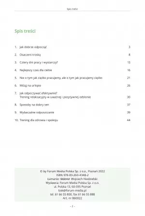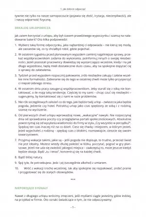 Joanna, menedżerka w korporacji, wraz z mężem i dwójką dzieci wyjechała na wakacje do Toskanii. Piękne, zabytkowe miasteczka, wyśmienita kuchnia, słońce i odpoczynek nad basenem – wszystko zapowiadało się wspaniale. Niestety, im bliżej było do wyjazdu, tym większe napięcie czuła – trzeba przecież załatwić tyle spraw, a w pracy Joannie zlecono nowe projekty. Już na tydzień przed wyjazdem wiedziała, że nie zdąży ze wszystkim. Na lotnisku mogę przecież dokończyć raport, wysłać kilka maili i zadzwonić do paru osób, dzięki temu szybciej zleci czas w hali odlotów – pomyślała. Oczekiwanie na samolot okazało się za krótkie i Joanna, sfrustrowana, musiała przerwać swoje zadania. Dokończę na miejscu, w hotelu, dzieciaki z mężem pójdą na basen, a ja w spokoju zrobię to, co mi jeszcze zostało – postanowiła. Na miejscu Joanna co chwilę sprawdzała skrzynkę mailową, wysyłała SMS-y, wykonała kilka ponaglających telefonów do firmy. Myślała tylko o tym, czy wiadomości dotarły, czy w firmie poradzą sobie bez niej. Bliscy drażnili ją, kiedy nalegali, żeby posiedziała z nimi na basenie. Joanna wróciła z wakacji bardziej zmęczona, niż była przed urlopem – zestresowana ciągłym myśleniem o pracy, nie potrafiła się odprężyć.