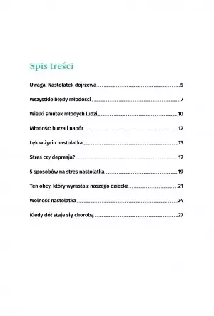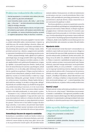 Dodatkowo daje wskazówki i ćwiczenia zarówno dla rodziców jak i nastolatków o tym jak radzić sobie z trudnymi, często negatywnymi emocjami,  jak nie wpadać w ataki paniki oraz kiedy i dlaczego warto udać się do specjalisty. Zwraca również uwagę, jak rodzice mogą radzić sobie z wybuchem niekontrolowanej złości nastolatka lub dostrzec jego emocjonalne potrzeby.