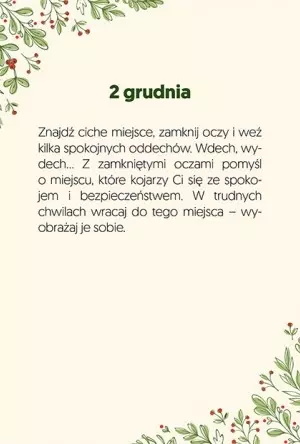 • Wypracujesz nowe nawyki i rytuały Daj sobie szansę i przestrzeń na wypracowanie nowych przyzwyczajeń, które wprowadzą do Twojego życia powiew świeżości, dodadzą energii i motywacji do realizacji nowych działań, a jednocześnie będą szansą na wprowadzenie zasad, które przyniosą Ci ukojenie i równowagę.