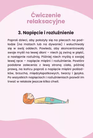 Nie zapomnieliśmy o chwilach spokoju, dlatego w zestawie znajdziesz 5 technik oddechowych oraz 5 metod relaksacji. Są one doskonałą pomocą w nauce radzenia sobie z emocjami i osiągnięciu wewnętrznej równowagi.