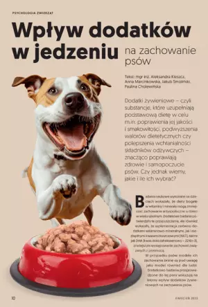 - Wpływ dodatków w jedzeniu na zachowanie psów // mgr inż. Aleksandra Kleszcz, Anna Marcinkowska, Jakub Smoliński, Paulina Cholewińska