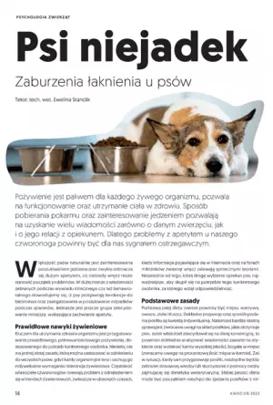 - Psi niejadek. Zaburzenia łaknienia u psów // tech. wet. Ewelina Stanclik