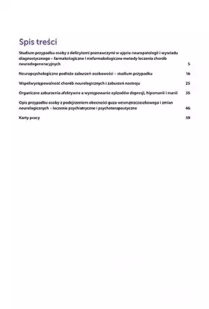 - karty pracy przydatne w pracy terapeutycznej, zawierające np. strukturę i najważniejsze elementy wywiadu diagnostycznego, test oceny wzrokowo-przestrzennych aspektów pamięci czy kryteria sygnalizujące potrzebę konsultacji neurologicznych.