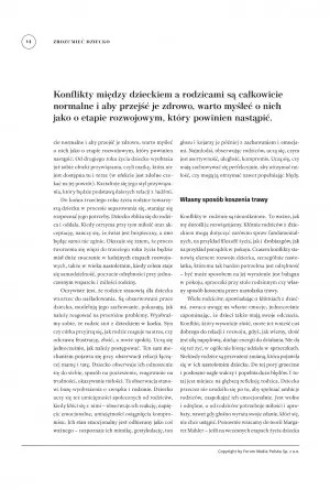 dobrego do relacji i rozwoju, gdyż, jak wiemy, złość jest siłą napędową, dodaje energii do działania. Nie da się też żyć, w ogóle nie biorąc udziału w sprzeczkach. Niekiedy rodzice są przerażeni zmianą, która pojawiła się w ich nastoletnim dziecku. Do tej pory grzeczne i posłuszne nagle walczy i popełnia dużo błędów. I tutaj jest miejsce na głębszą refleksję rodzica. Dziecko przecież nie urodziło się po to, aby spełniać ambicje rodziców, zaspokajać ich emocjonalnie. Jest wolne i odrębne, a od rodziców potrzebuje miłości i aprobaty, nawet gdy głośno wyraża swoje zdanie, kłóci się, nie chce ustąpić. Ponownie wracamy do teorii Margaret Mahler – jeśli na wczesnych etapach życia dziecka pozwolimy mu na zbudowanie bezpiecznego przywiązania, nie będzie się bało później w relacji z innymi być odrębnym i wyrażać własne zdanie.